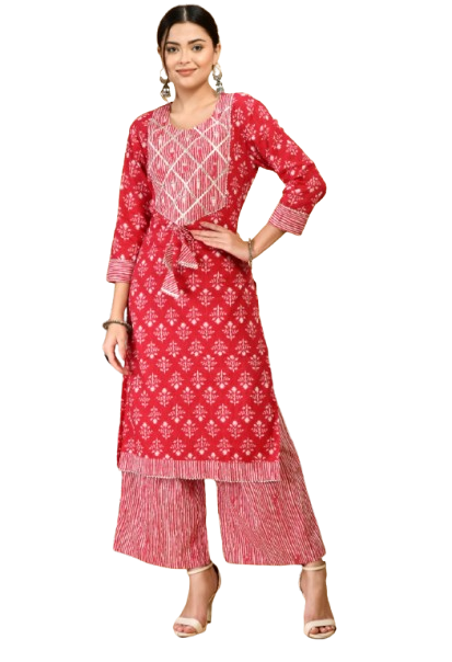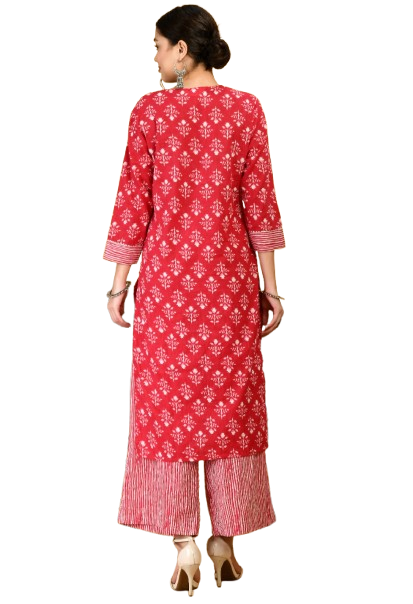 Crafted from soft, breathable cotton, this 2-piece kurta set offers effortless comfort with a relaxed straight-fit silhouette and lightweight cotton pants—perfect for everyday wear.